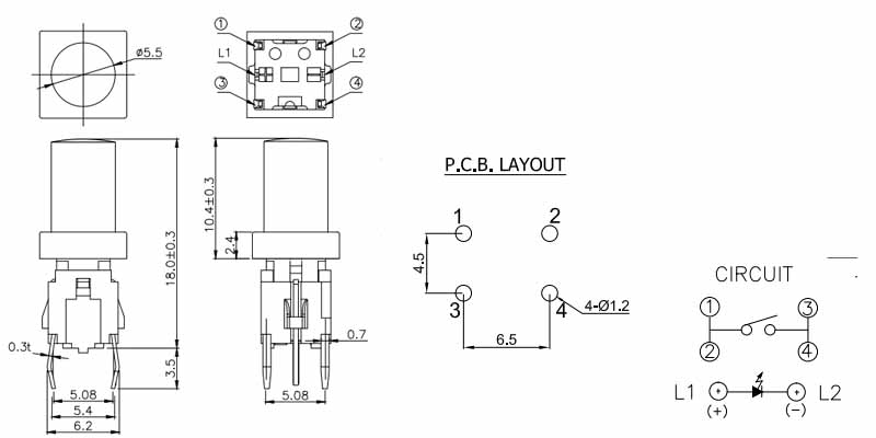 • 帶燈輕觸開關(guān)TS1-00-6AR1-2C-2S