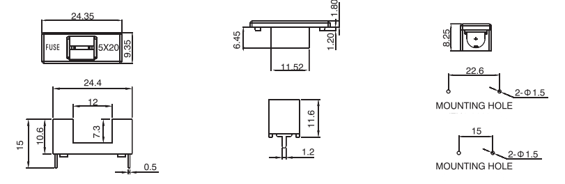 保險絲座FH系列,保險管座常見于PCB固定和螺母固定兩種方式,電流10-30A不等,配置的保險管5*20mm和6*30mm,擁有UL CE CQC認證,廣泛用于汽車行業,家電等